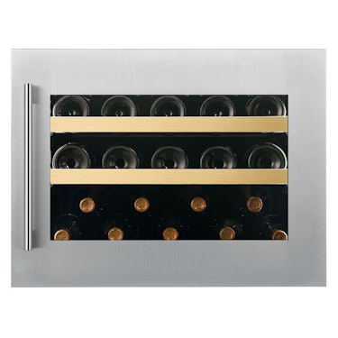 Bij een wijnkoeler vind je op het energielabel niet de inhoud in liters. Om de grootte te bepalen wordt gekeken naar de hoeveelheid flessen wijn van 0,75l die in de wijnkoeler past.