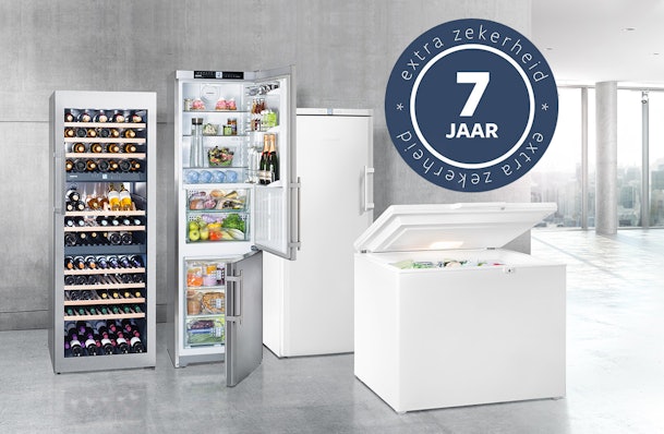 Alle huishoudelijke koelkasten, vriezers en wijnkasten komen daarnaast in aanmerking voor de unieke 7 jaar zekerheid. Dit geldt zowel inbouw als vrijstaande modellen, mits huishoudelijk gebruikt. Van het derde tot en met het zevende jaar na aankoopdatum ontvang je in het geval van een storing garantie op alle onderdelen en arbeidsloon. Er worden dan alleen de voorrijkosten in rekening gebracht.